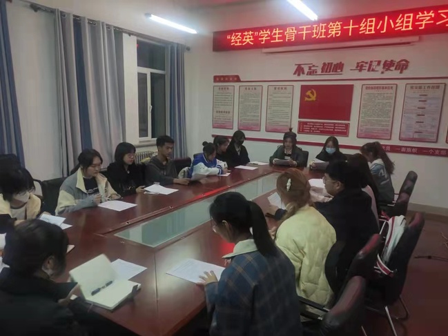 本次学习和讨论旨在提高学生骨干思想认识,使其增强责任意识,明确工作目标,在政治觉悟、道德品质和文化素养等方面得到提升,成长为一名政治强、品德优、能力强、学习优的学生骨干,充分发挥学生骨干的“标杆”和“样板”作用。小组成员积极发言热烈讨论。