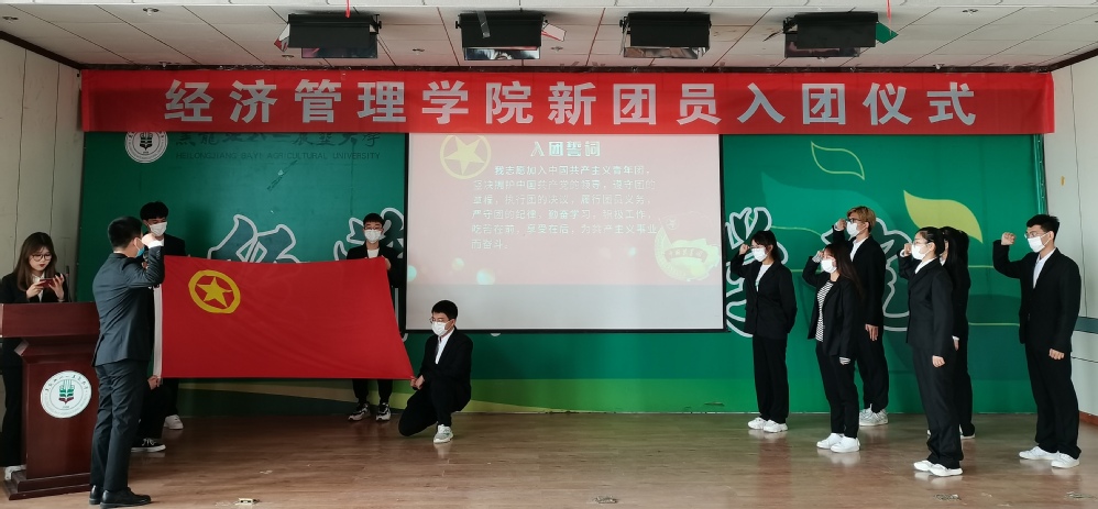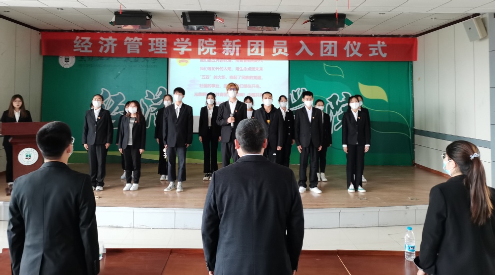 为弘扬五四精神,引导学生坚定理想信念,5月4日,我院在经管楼445报告厅举行新团员入团仪式,学院党委副书记闯垒、2019级思想政治辅导员梁净、2021级思想政治辅导员孙唯一以及本次入团新团员6人参加本次活动。