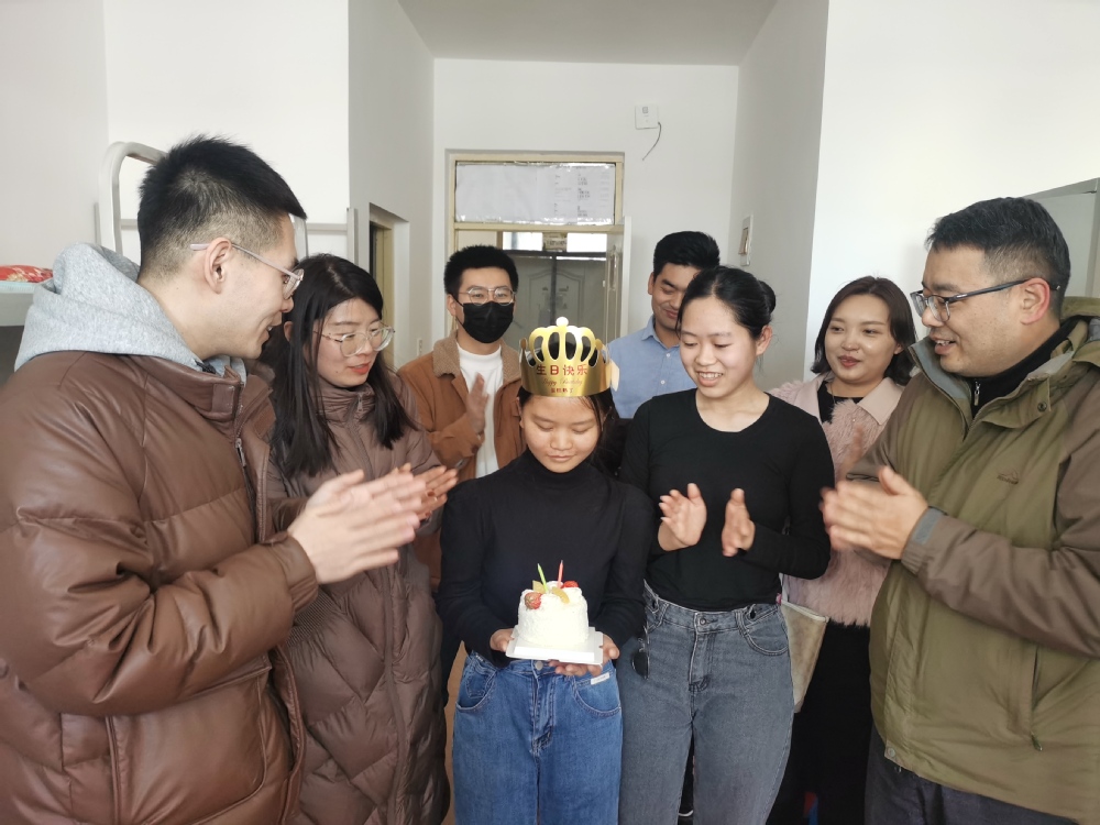学院为返校日过生日的两名新同学准备了特殊的“见面礼”,香甜的生日蛋糕、真挚的生日祝福、美妙的生日快乐歌……以这样暖心的方式为他们庆祝进入大学校园的第一个生日,弥补了他们旅途舟车劳顿没能和家人一起庆祝生日的遗憾。