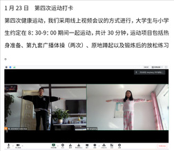 支教感悟:在云支教活动中,我深刻体会到了“学然后知不足,教然后知困”这句话的含义。为了让小课堂变得更精彩,我会提前备课;为了让运动更有规律,我制作了一份运动计划表。我和小朋友会彼此打气,互相监督。这次云支教帮扶活动增进了我们之间的感情,也给我带来了很多意外的惊喜。
