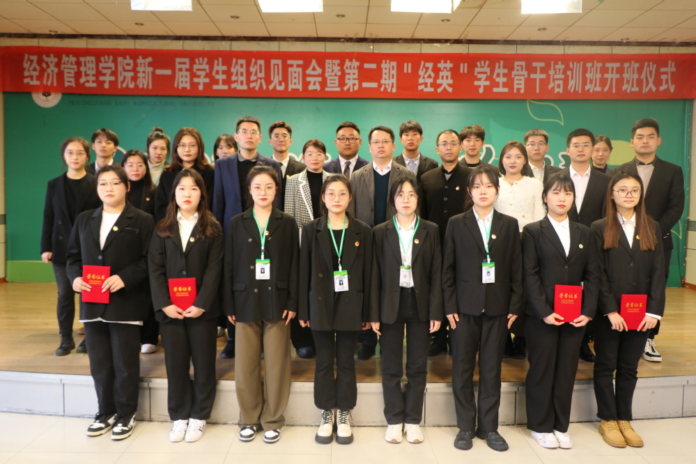 学院党委书记单忠纪作总结讲话,对新一届学生骨干和第二期“经英班”学员提出希望和要求,希望新一届学生骨干能够明确基本职能,聚焦服务引领,加强自身建设,凝聚青年力量,希望“经英班”学员珍惜宝贵学习机会,认真完成学习任务,坚持理论联系实际,切实提高履职水平,时时处处以身作则,发挥先锋模范作用。