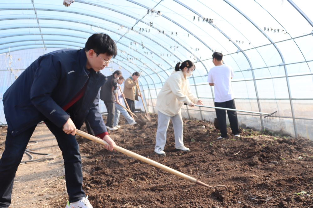 4月26日,“经英班”学员代表在校内实验大棚体验农事劳作,感受劳动的辛苦与乐趣。学员们分工协作,完成翻地、除草和种植等工作。通过此次耕读教育实践活动,学员们学到了很多的农耕知识,树立劳动最光荣、劳动最崇高、劳动最伟大、劳动最美丽的观念,进一步焕发劳动热情。